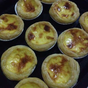 到时后,观察蛋挞,若不满意可继续加热至满意为止,但不要升高温度,否则蛋挞会糊。
