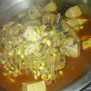 豆芽,嫩豆腐,香菜,洗着备用,加嫩豆腐只是个人爱好,不过真的很好吃。。