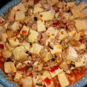 放适量豆瓣酱翻炒,加水,不要太多,放入香菇丁,豆腐,待翻开之后放入之前炒好的肉末,用铲子轻轻推几下,最好是木铲子,这样豆腐不碎。稍微炖一下放入调料即可。
