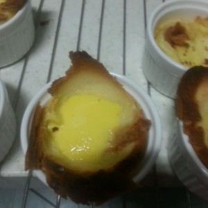 切开。 两片一杯装起来。装4-5杯倒上蛋液。忘拍照了