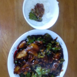 少许油,加入番茄酱,蒜,炒出香味,加入茄子,辣椒翻炒。