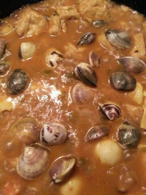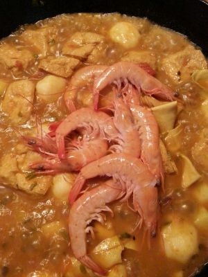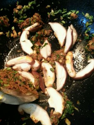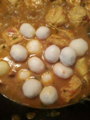 丸子差不多熟后,加入贝壳类,因为贝壳类容易熟,所以这时候放。