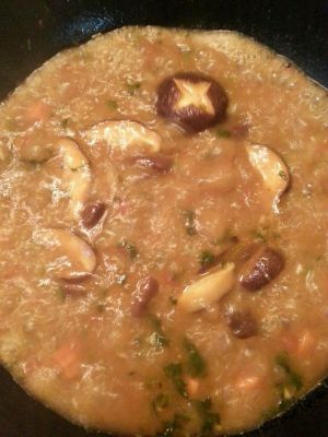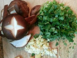 洗净所有材料,姜蒜,香菜切末,香菇切片备用。