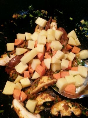 土豆,胡萝卜丁也下锅炒炒炒。。。