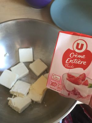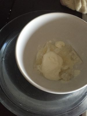 5:黄油10g放入。加入20cl的淡奶油(我的淡奶油是法国牌的)