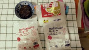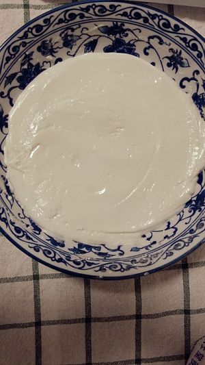 取一平底容器,底面积大一点的,我用了汤盘。粉和糖用水调匀,注意不要有干粉。用勺子抹平,粉的厚度小,则熟的快。烧开水,蒸10分钟。如果厚度大,可能需要20分钟。