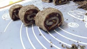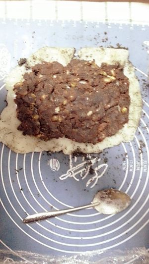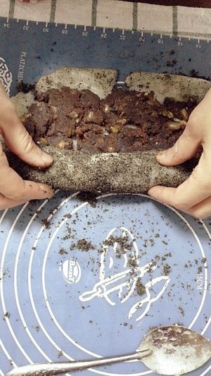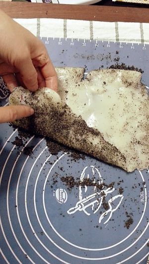 芝麻粉或者其他粉铺案板上,面饼放上,底面就可以粘上芝麻了。