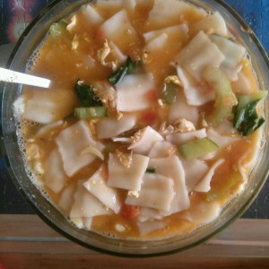 面片煮好,加入炒好的西红柿鸡蛋,青菜等,调味即可。