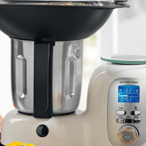 安装搅拌钩,放入切块的排骨和没过排骨的清水,盖上杯盖。设置【时间5分钟、温度50度、转速1档】清洗排骨。沥干