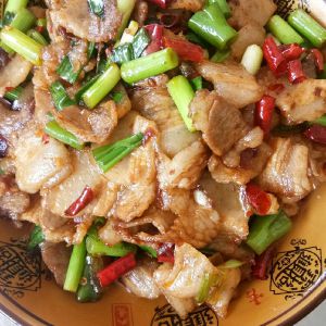 把油下锅,放姜磨,丘北辣段,炒出香味,再放入切好的肉片一起炒,把肉炒了出香味,放入郫县豆瓣酱,葱,青椒,最后放酱油调味,就ok了!
