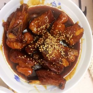 汤汁快收尽时加香醋,注意一定是香醋要不口味会变,加糖,一定要多加糖,自己尝一下口味,然后汤汁收尽就可以啦