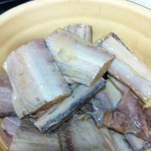 处理好带鱼,去掉内脏,刮掉鱼鳞,去掉肚皮里面那层黑膜。