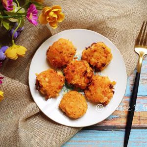 油锅八成热,土豆饼放入,小火慢煎,中途不要一直去碰它,很容易碎,一直煎到晃动锅子,土豆饼和锅能主动脱离,此时翻面。同理,另一面也煎至和锅底能主动脱离,就可以出锅了。