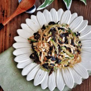 木耳泡发好,用热水焯一下,切成丝