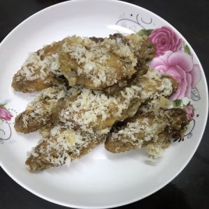 沾好面包糠的鸡翅摆在木筷子上,我每次摆五只