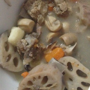 等莲藕烂了,淮山烂了,排骨也烂了。就可以放盐啦