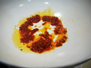 鍋子洗淨,加熱烘乾,下北非Harrissa辣醬,炒到香味出來。