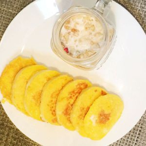 不粘锅加少许橄榄油小火煎至双面微焦即可