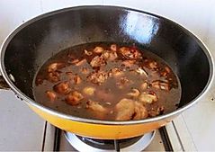 放入料酒、盐、生抽、甜面酱调味,放入调料,再加入清水