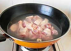 鸭子洗净、斩块,凉水下锅,放入几粒花椒,焯水