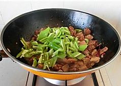 炖熟后出锅时放入青椒,翻炒均匀即可