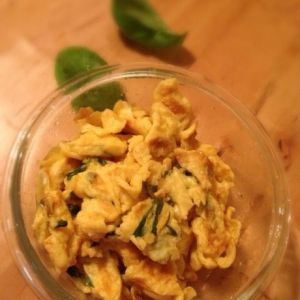 有的人炒鸡蛋会加些水,炒出来的鸡蛋会嫩,原本我是想加些牛奶,可是我已经好久不买超市带包装的饮品了,最后撒了点盐也稍微加了点糖提味。