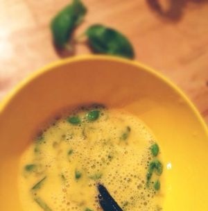 终于舍得修剪枝叶了,只有这样它才能长出分枝,一下子剪掉只剩3,4叶高度,九层塔的香味是十里香,两三个鸡蛋只能驾驭4、5片叶子,于是剩下用水泡着明天用于别的菜式