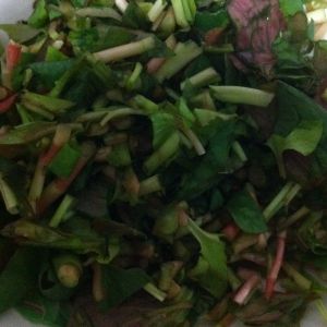 黄瓜切丝,折耳根切碎,香菜切碎,小米辣、蒜切沫。