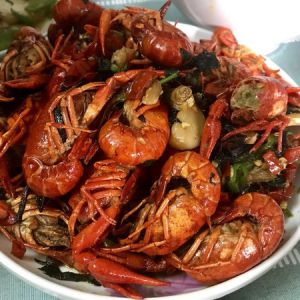 放入小龙虾,翻炒,滴几滴麻油,放盐,酱油
