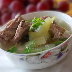 然后加入冬瓜块,加适量的盐在煮15分钟,加入鸡精和香菜段,滴入几滴香油即可出锅。