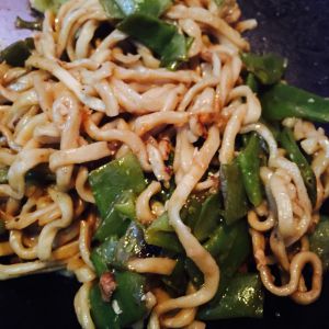 开盖,将面与下面的扁豆搅匀,尝下咸淡和面是否熟透。淡了加盐(一般不用),不熟再翻炒一会,注意别糊锅。