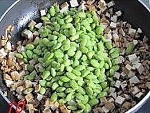 加入蒸熟的毛豆;
