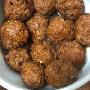 另起炒锅,倒入一丢丢的油,放入切段的小葱,2勺生抽,一勺老抽,一小勺的白糖,炒出香味后倒入一碗开水,再把炸好的肉丸子倒入锅内!加盖煮二十分钟!(中间用筷子给丸子翻了个身!水不要太多,淹没丸子即可)