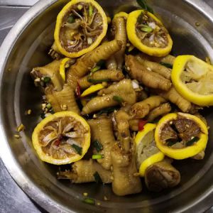 最后把所有的材料和配料倒下去,用你干净的小手手抓均匀。抓的过程小心点哦,以免被鸡爪尖锐的骨头划伤。然后用保鲜膜封着放入冰箱4—6个钟,就可以吃啦。