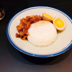 准备好白米饭,配上卤肉,浇上汤汁,拌匀即可开吃。热腾腾的一大碗,卤肉酥烂入味,汤汁咸鲜香甜,吃不腻。