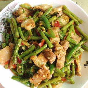 锅烧热,不放油,干锅炒豆角,将豆角炒至七八分熟盛出备用。
