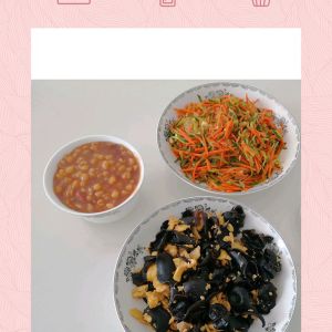 木耳一小把,放水中泡发,切掉跟部,一定要过热水焯一下,可以减少炒菜时候放油蹦锅,不然太可怕了。准备葱姜蒜等调料。