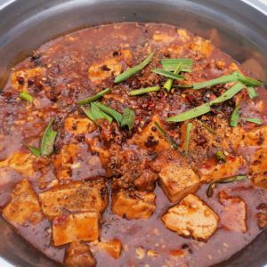 现在开始做了,锅中放水,加入少许盐,凉水放入豆腐,煮开,焯出豆腥味,之后捞出放入凉水中