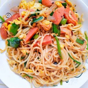 香喷喷的炒面出锅喽!第一次尝试这样做面条,很成功!欢迎大家来试做!