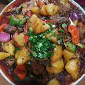 土豆,胡萝卜,鸡块焖烧软糯后,加入切好的洋葱,青红椒。加入适量的盐,鸡精,味精,糖,胡椒粉调味,翻拌均匀后装盘撒上葱花就可以上桌啦!