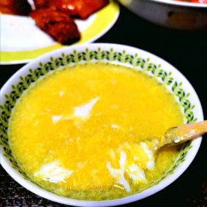 玉米开始浮沫,这个时候要一直用筷子或者汤勺搅拌,火不要太大,很快就煮开。煮开之后打一个鸡蛋进去继续搅拌,然后放入一勺盐,一勺糖,糖主要是提鲜,清甜