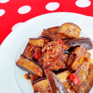 茄子切好,撒盐均匀后腌制10分钟,挤出水份。因为腌制后,茄子出水不足,我又放烤箱180摄氏度烤了10分钟。这时候茄子状态更好了。