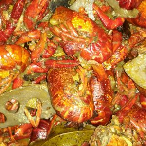 在加入小龙虾,放入香料炒几分钟。在加入啤酒以及适量的水煮开。