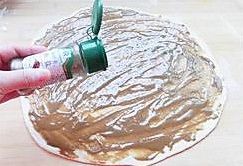 均匀地抹上芝麻酱、撒上椒盐