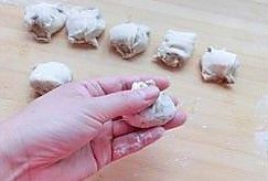 包成小球状,用手压扁
