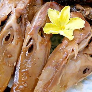 然后倒鸭头进去翻炒一下加水,加一点酱油和五香粉。
