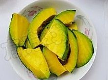 取一块南瓜,削皮,切成大块,蒸熟。