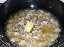 将焯好的牛肉及生姜块倒入。