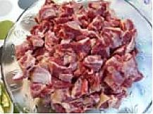 牛肉切成小块,在开水中焯去血水洗净沥干。