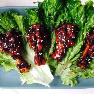 关火装盘 为了卖相好看 可以在盘子里铺上几片生菜 将鸡腿放进去 撒上些许芝麻 一道美味的可乐鸡腿就完成啦~